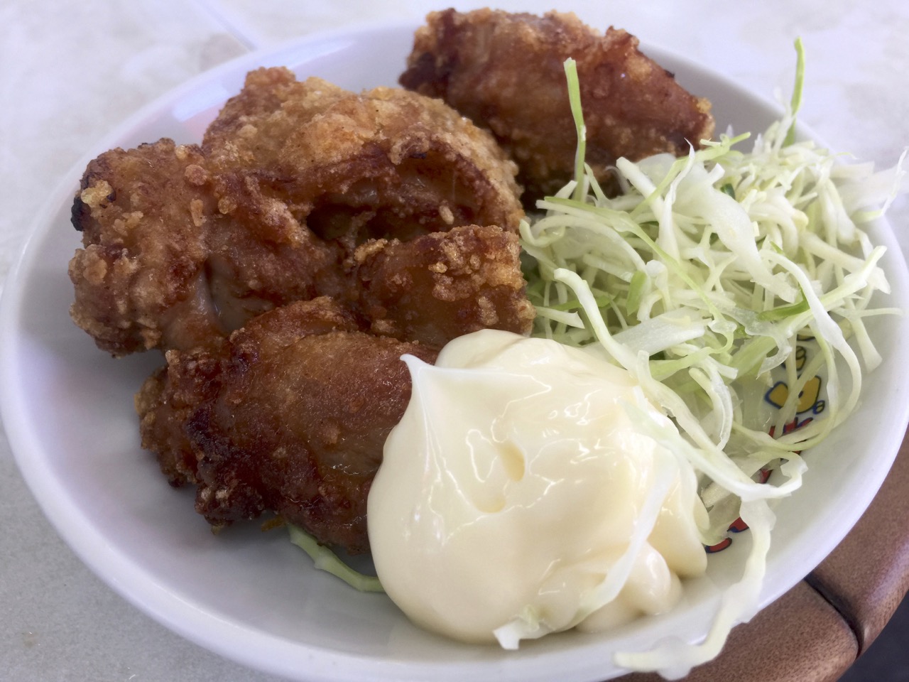 唐揚げセットにしてみた。ご飯は美味しかった。たくあんはいかにもスーパー的なところがまた素朴で美味しく感じてしまった。唐揚げは二度揚げのかりかり、中は若干ジューシーだが結構揚げられちゃってますって感じでした。