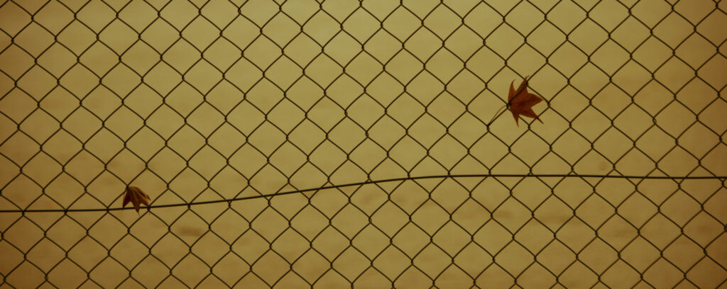 落ち葉が金網にくっついていた。